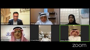 في حين تقدمت بعده رئيس مجلس الادارة الأستاذة هدى الناصر بإلقاء كلمة المنتدى مرحبة بالحضور وشاكرة لهم استمرار تفاعلهم، مشيرة إلى أنه في ظلِ هذهِ الظروفِ التي فرضتها الجائحةُ، والمتغيراتِ المتلاحقةِ التابعةِ لها، قد تكونُ التحدياتُ كثيرةٌ، ولكنَ التطلعاتِ لتقديمِ موسمٍ مميزٍ أكبرَ. وأضافت إن إيمانَ المؤسسِ لهذا المنتدى وفريقِ عملهَ برسالةِ ورؤيةِ المنتدى، دفعت الجميع للطموح دائماً لتحقيقِ غايةٍ واضحةٍ و نابعةٍ أولاً من حاجاتِ المجتمعِ وتلمسُ كل قضاياهُ الملحةِ، ثم النظرةُ المستقبليةُ لما يجبُ أن يكونَ عليه الحراكُ الثقافي، بالتعاونِ لتحقيقِ ذلكَ مع كلِ الجهاتِ الرسميةِ والاهليةِ، وفتحِ الأبوابِ لكلِ التياراتِ والتوجهاتِ الفكريةِ المختلفةِ من داخلِ وخارجِ المملكةِ للمشاركةِ في المنتدى من خلالِ حوارٍ تفاعليٍ منظمٍ ومتواصلٍ يساهمُ في خلقِ محتوىً معرفي يتميزُ بالثراءِ والتنوعِ، وصولاً لدعمِ المبادراتِ الإنسانيةِ وإبرازِ الكفاءاتِ والطاقاتِ الفرديةِ والمجتمعيةِ والسعيُ الدائمُ نحو التحولِ لأن يكونَ المنتدى مؤسسةً ثقافيةً رائدةً على مستوى الوطن.
