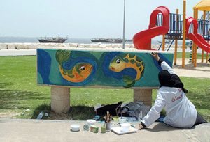 - ودعا القائمون على الحملة للمشاركة كلا من الفنانين والموهوبين والمصورين والمتطوعين والأطفال، متوقعين تحويل 150 كرسي في الواجهة البحرية إلى متحف فني في الفضاء.